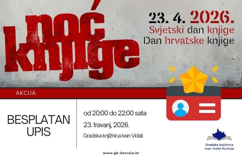 Iskoristite akciju besplatnog upisa i u povodu Noći knjige postanite član Gradske knjižnice Ivan Vidali. |