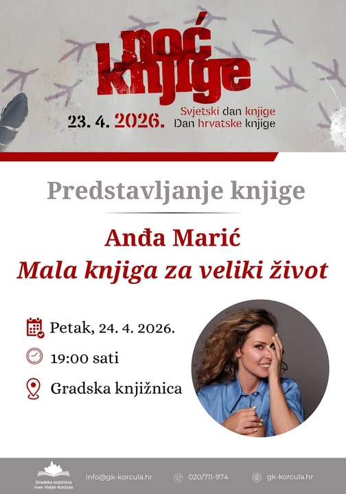 Pridružite nam se u petak, 24. travnja, na susretu s Anđom Marić, hrvatskom glazbenicom, spisateljicom i motivatoricom, koja će nam predstaviti svoju novu knjigu i pričati o svojoj borbi s teškom dijagnozom i hrabrosti da živimo punim plućima unatoč svemu! |