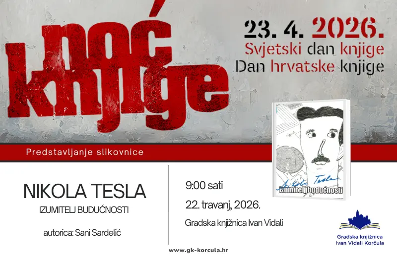 Pozivamo vas na predstavljanje slikovnice Nikola Tesla: izumitelj budućnosti koje će se održati u srijedu, 22. travnja u Gradskoj knjižnici Ivan Vidali s početkom u 9:00 sati. Slikovnicu će predstaviti autorica Sani Sardelić.