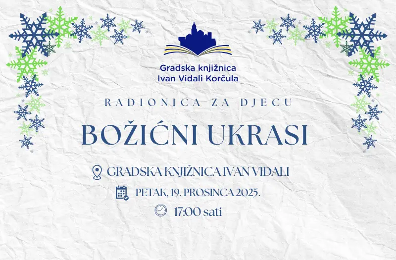 Pridružite nam se u Gradskoj knjižnici Ivan Vidali u petak, 19. prosinca, na radionici izrade božićnih ukrasa s početkom u 17.00 sati.