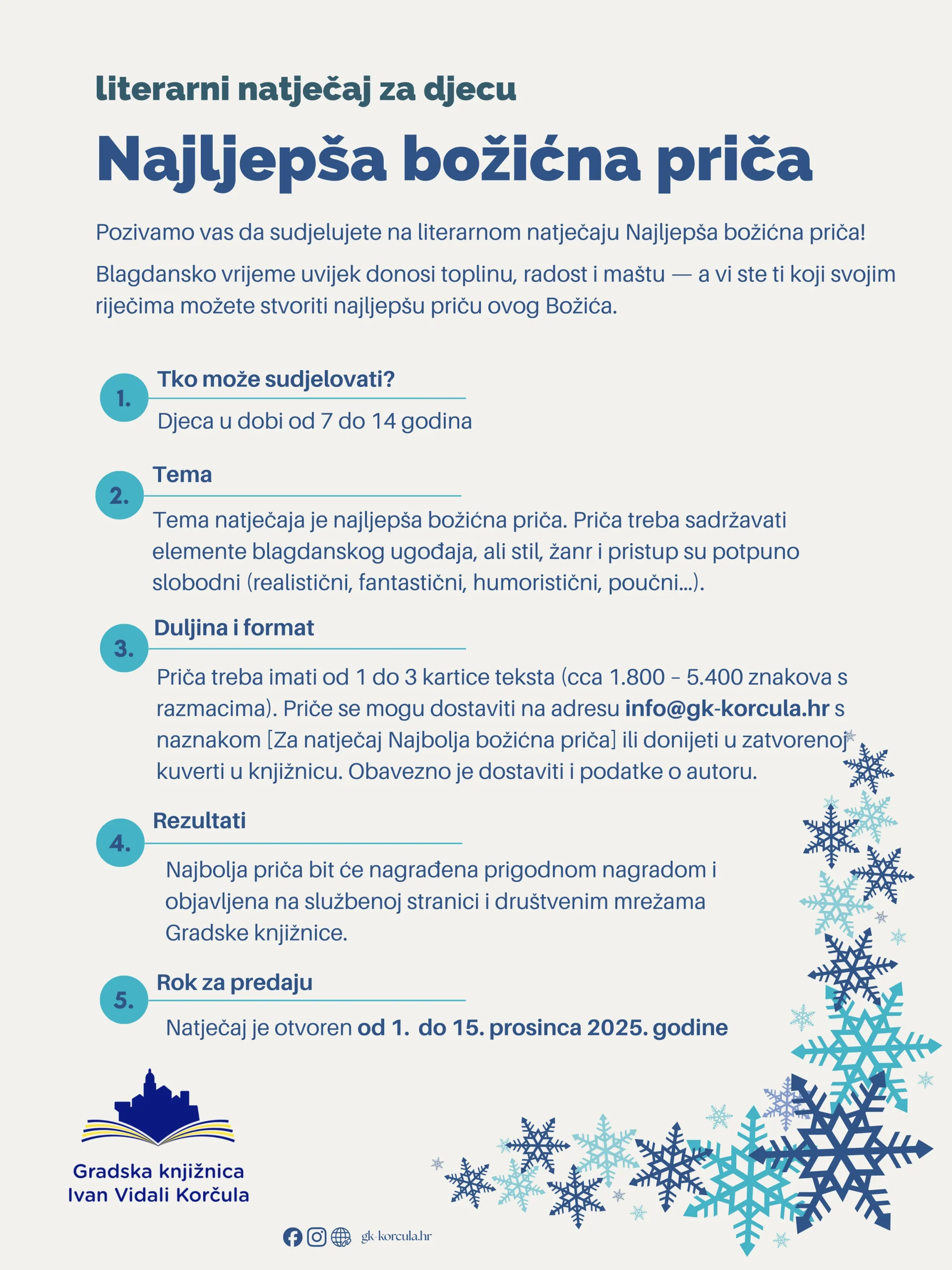 Pridružite nam se na božićnoj kreativnoj radionici za djecu koja će se održati u petak, 12. prosinca, u Gradskoj knjižnici Ivan Vidali s početkom u 17.00 sati.