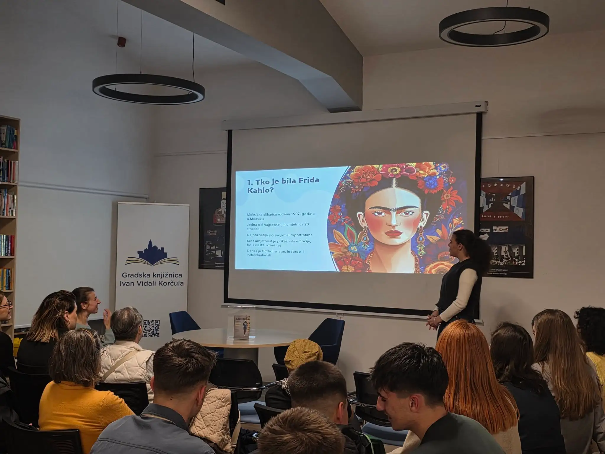 Program povodom Međunarodnog dana žena nastavili smo jučer u Gradskoj knjižnici Ivan Vidali predstavljanjem projekta učenika 3. A razreda Srednje škole Petra Šegedina, izborna nastava pod mentorstvom prof. Josipe Favro Kurtović, o iznimnim i zaslužnim ženama.