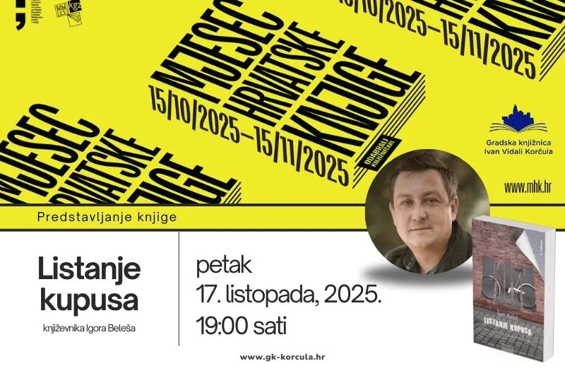 U okviru programa Mjeseca hrvatske knjige 2025. Gradska knjižnica Ivan Vidali ugostit će hrvatskog književnika Igora Beleša koji će predstaviti svoj roman Listanje kupusa. Predstavljanje će se održati u Gradskoj knjižnici Ivan Vidali u petak, 17. listopada, s početkom u 19:00 sati.